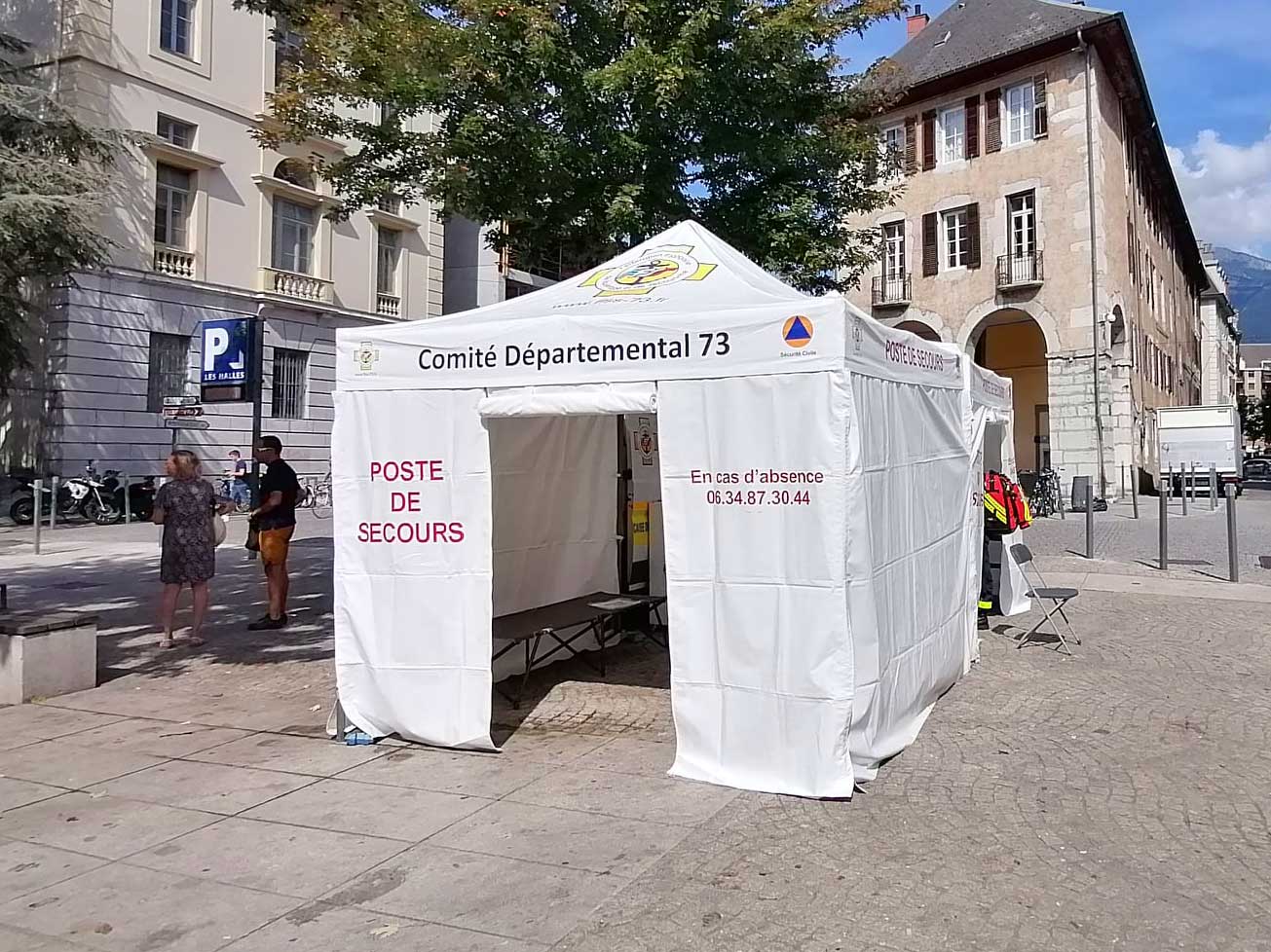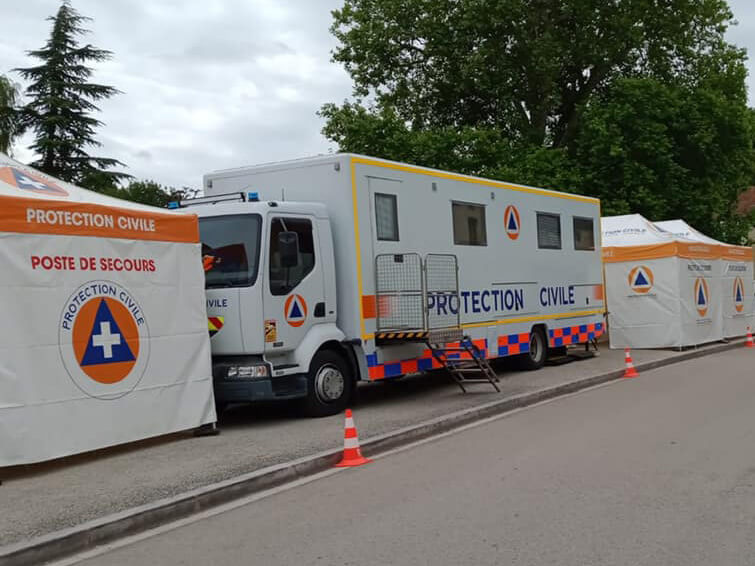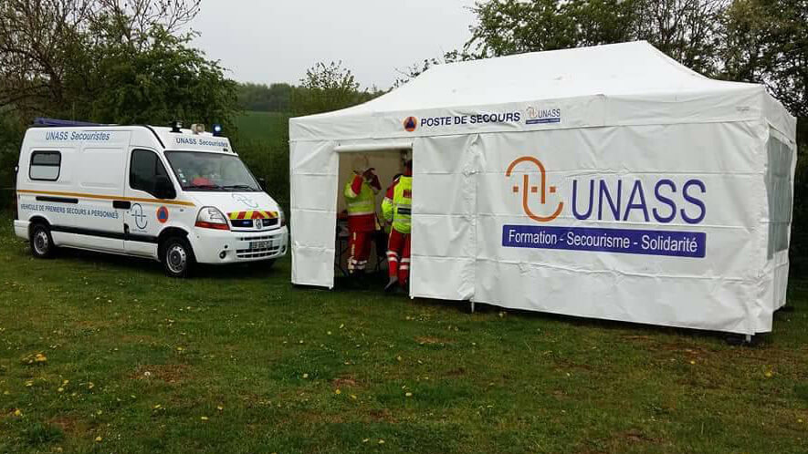 Die große Stärke des Sanitätszelts ist seine einfache Handhabung (Aufbau in 30 Sekunden), sein geringer Platzbedarf im zusammengelegten Zustand und die Sicherheit, die es den empfangenen Personen bietet.