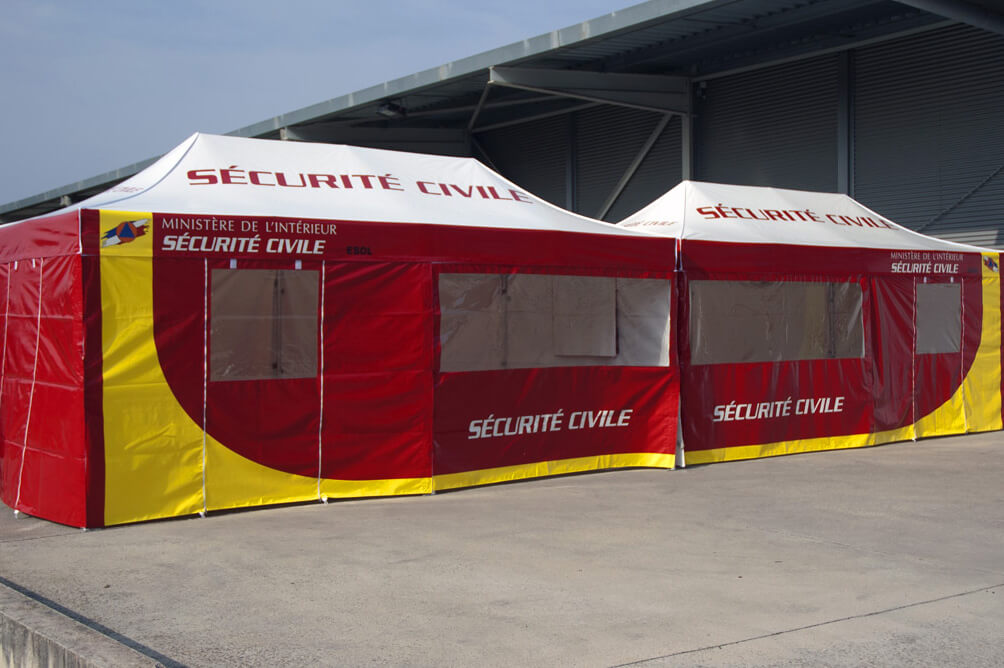 Ihre Sanitätsstation kann individuell gestaltet werden (Farben, Aufdrucke, Zubehör …). Wir stehen Ihnen zur Seite, damit das Faltzelt allen Ihren Einsatzfällen gerecht wird.