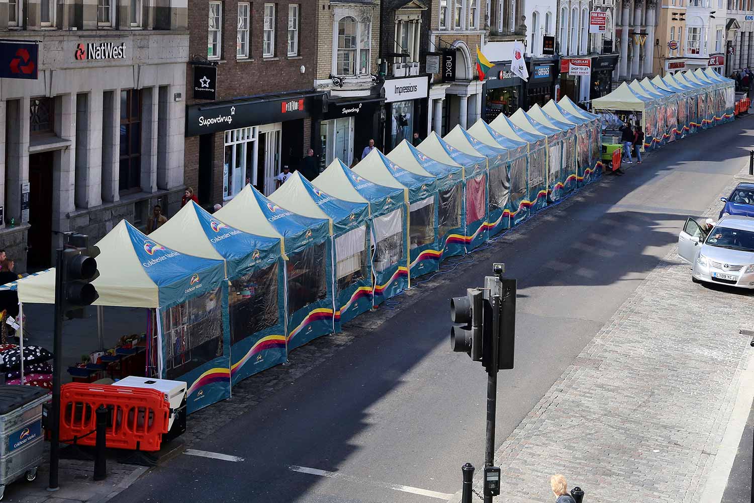 dank unserer in Sekundenschnelle aufgestellten Faltzelte.