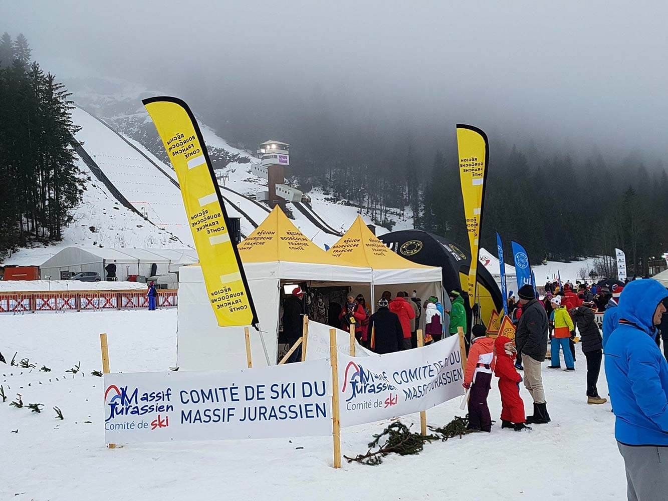 Die robuste Aluminiumrahmenstruktur kann 9 bis 25 m² überdachen – ausreichend Platz für Teilnehmer, Sponsoren oder einfach nur, um die Skier zu lagern.