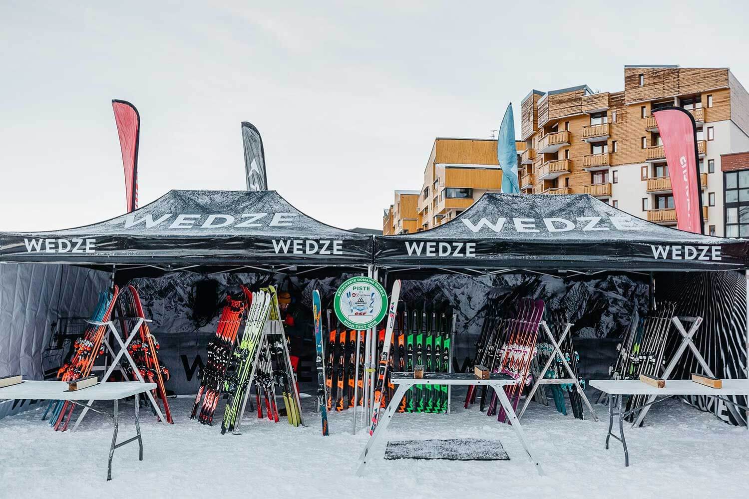 Unsere Faltpavillons bieten Schutz für Skier und Ausrüstung, unabhängig davon, wo sie aufgestellt werden. Die wasserdichte und äußerst flexible Plane ist sehr strapazierfähig und schützt vor Schnee, Regen und Schmutz.