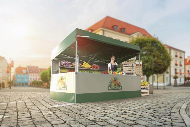 Der T3-Faltstand wird in Frankreich hergestellt. Sein System aus Teleskopstreben, das die Nutzung als Flachdach oder als geneigtes Dach zulässt, wurde zum Patent angemeldet. Dank seines Flachdachs lässt er sich leichter an bestimmte Umfelder anpassen, er kann beispielsweise an die Gebäudewand eines Geschäfts gestellt oder unter Bäumen aufgestellt werden.